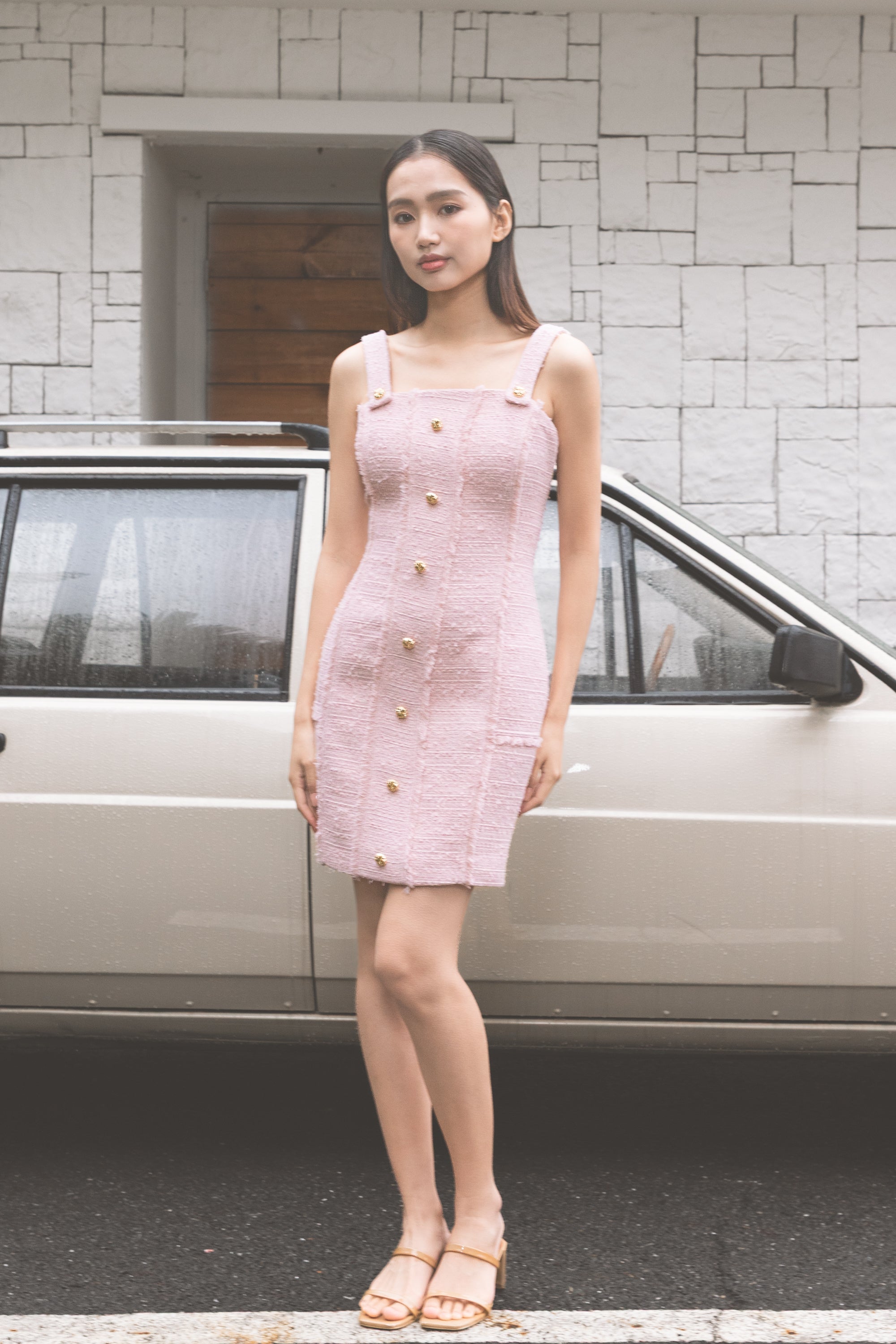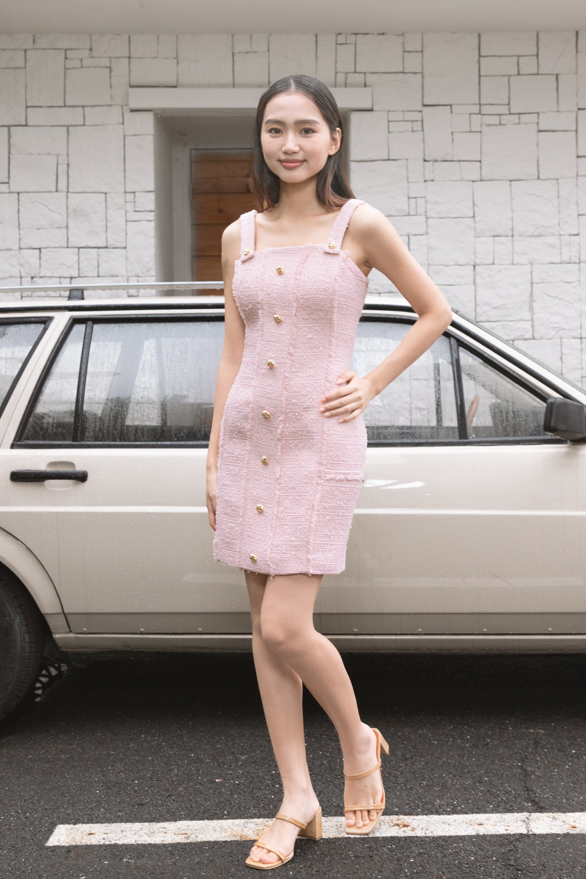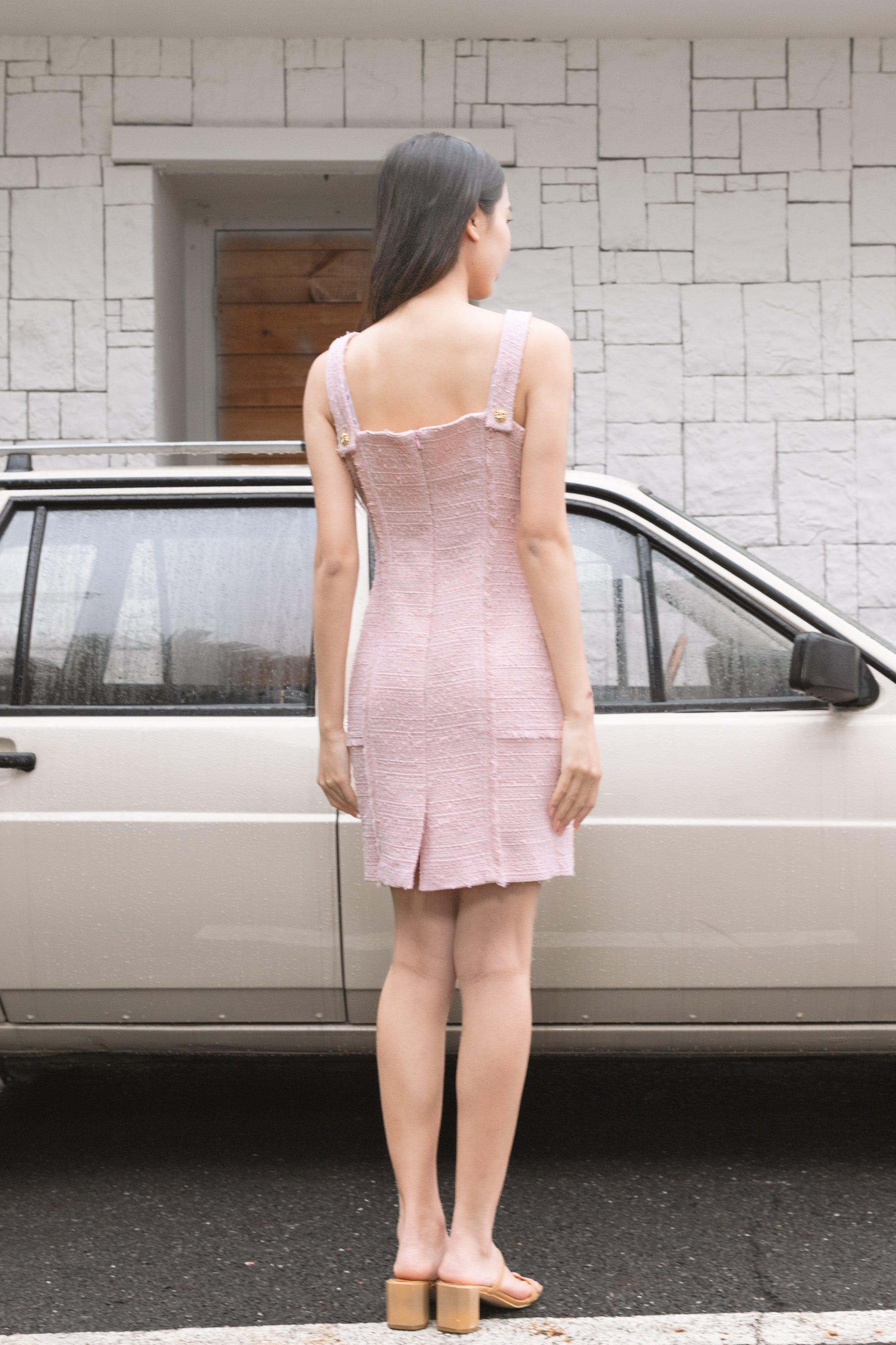 Aashi fringed pink tweed dress