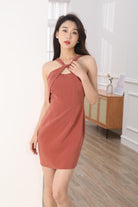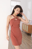 Arya twisted neckline mistyrose dress