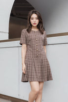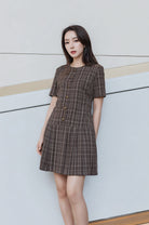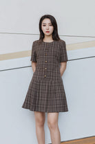 Elena pleated details checked dress