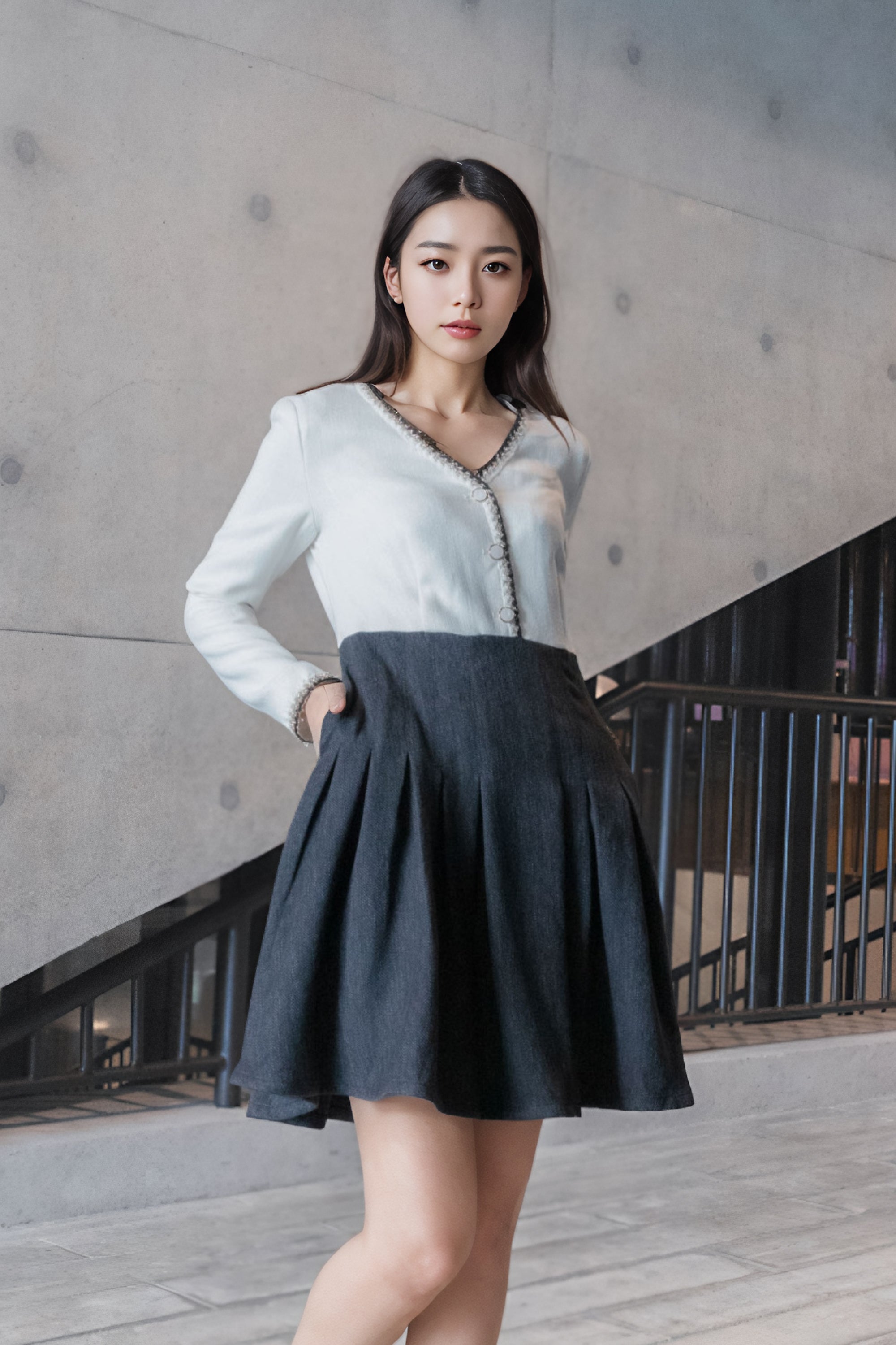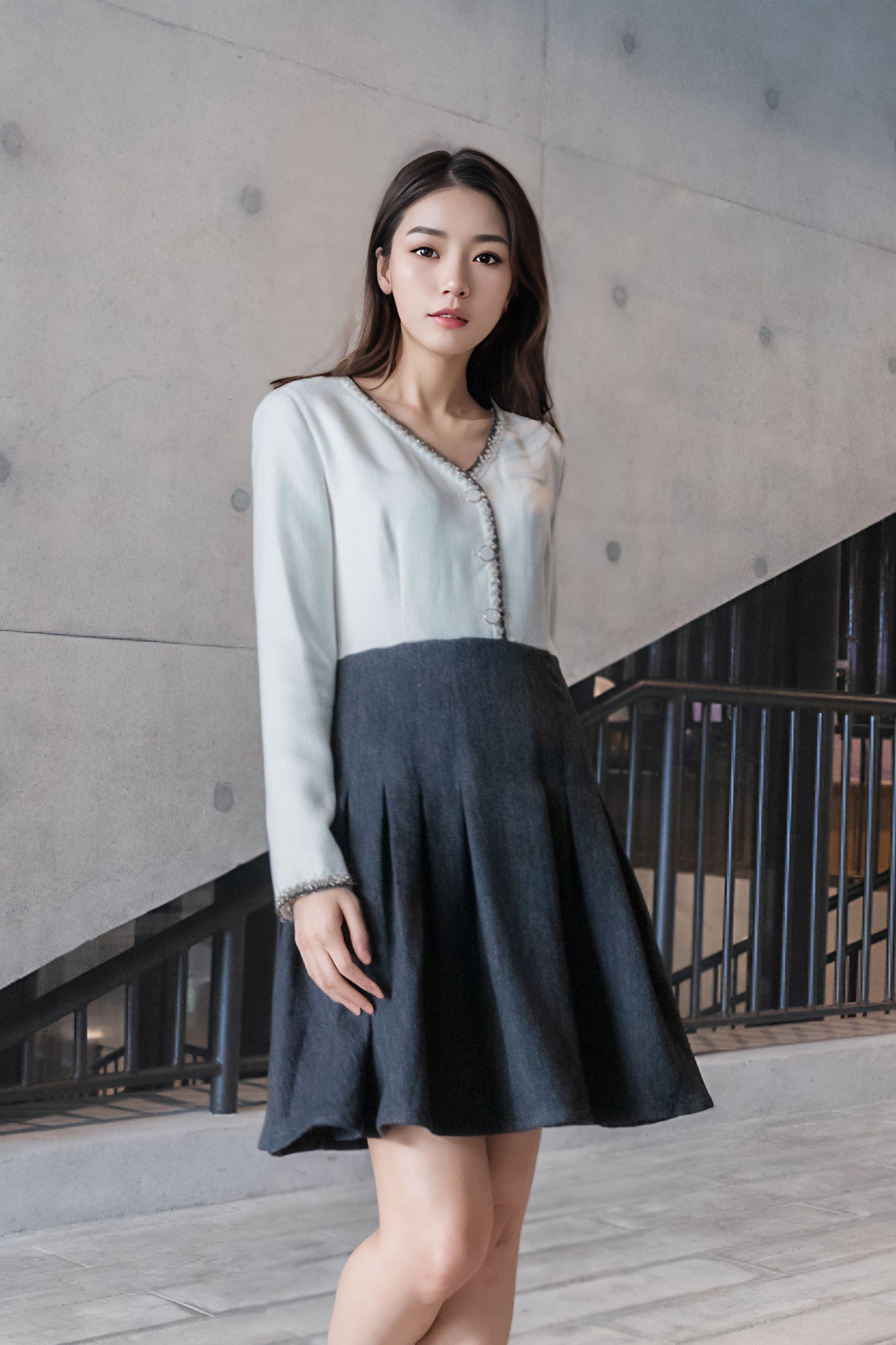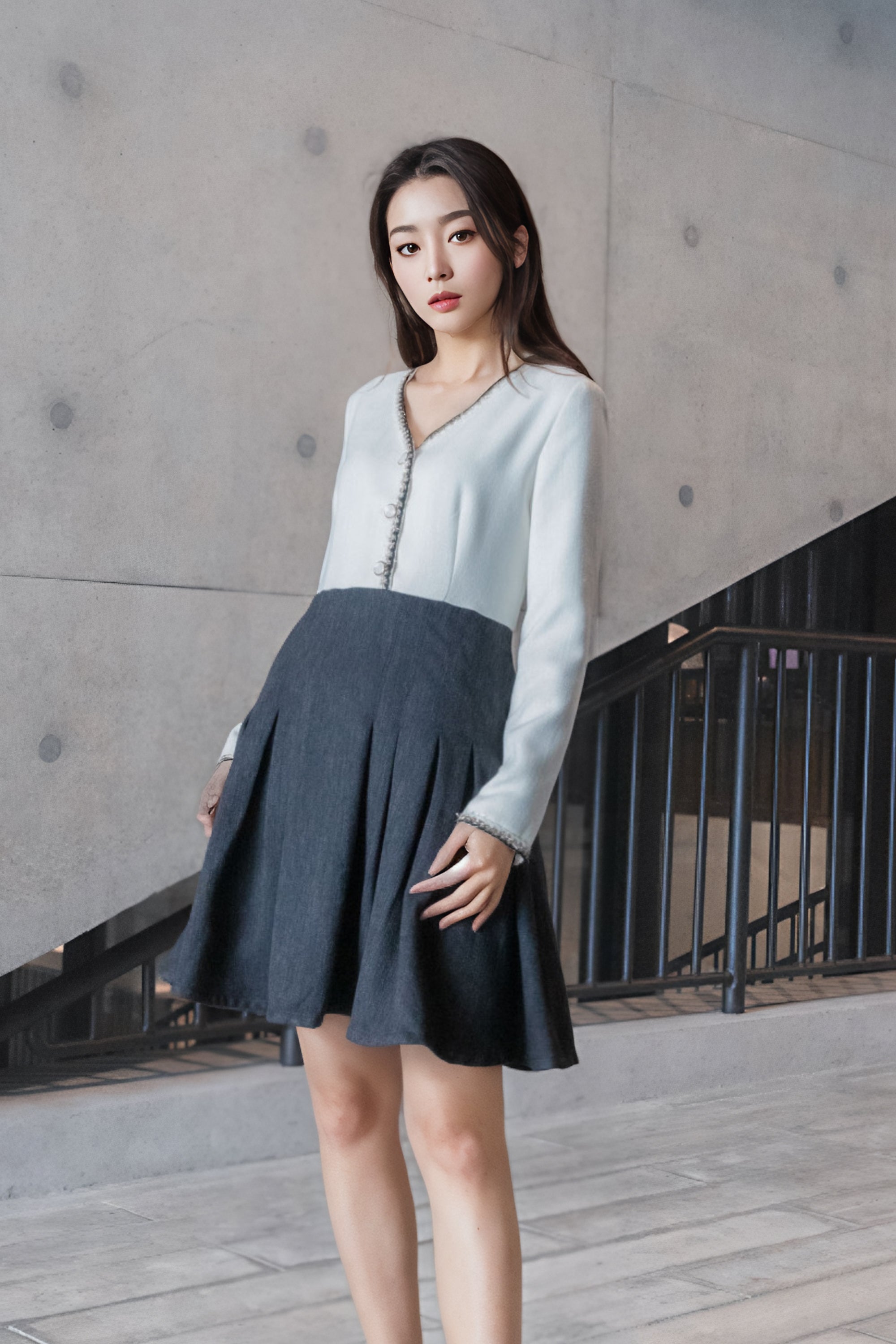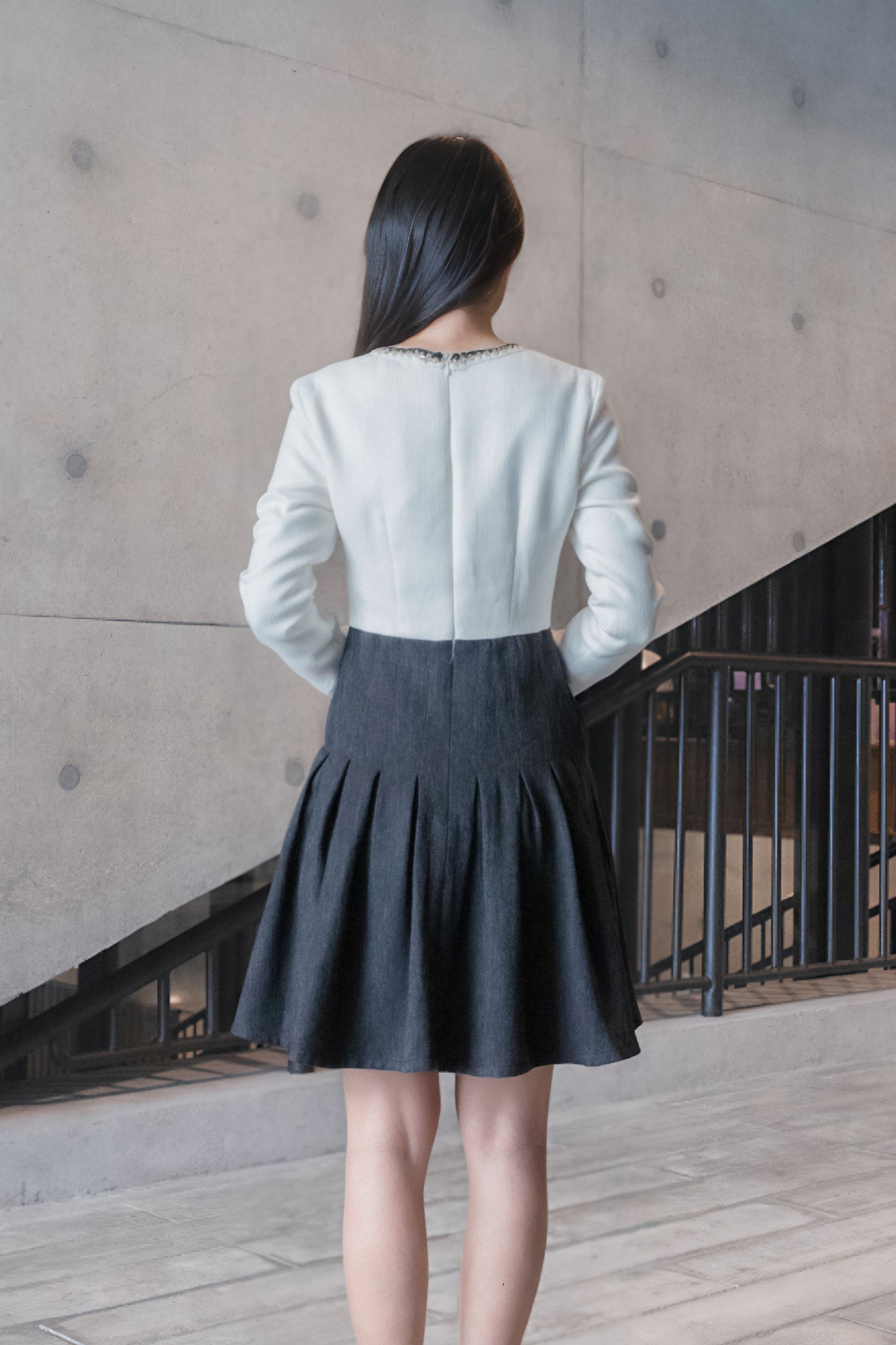 Elena trimmed tweed dress