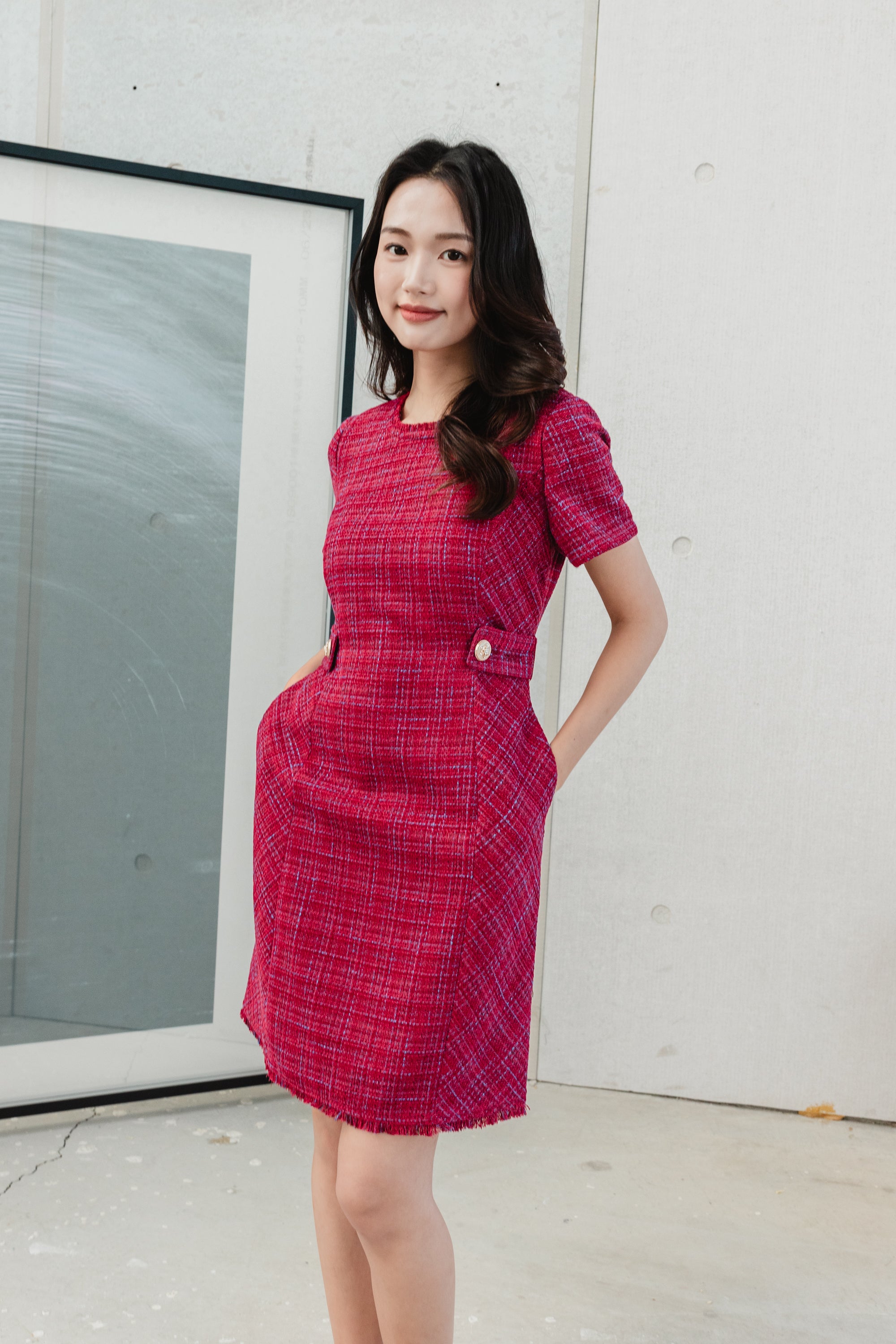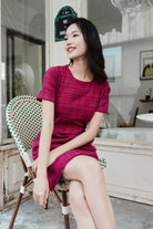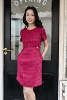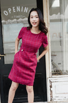 Gaia fringed belt tweed dress