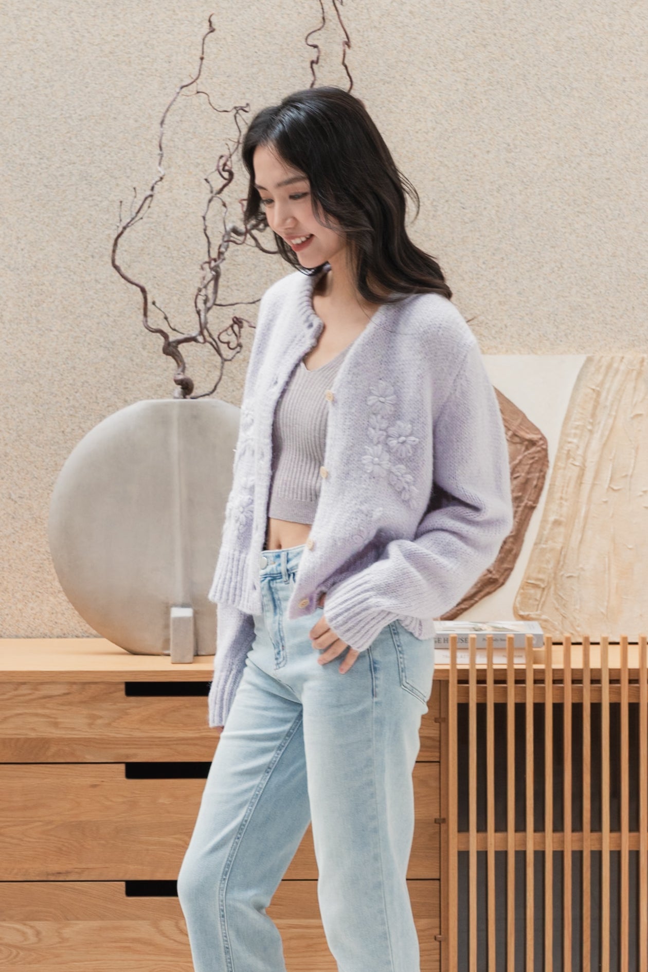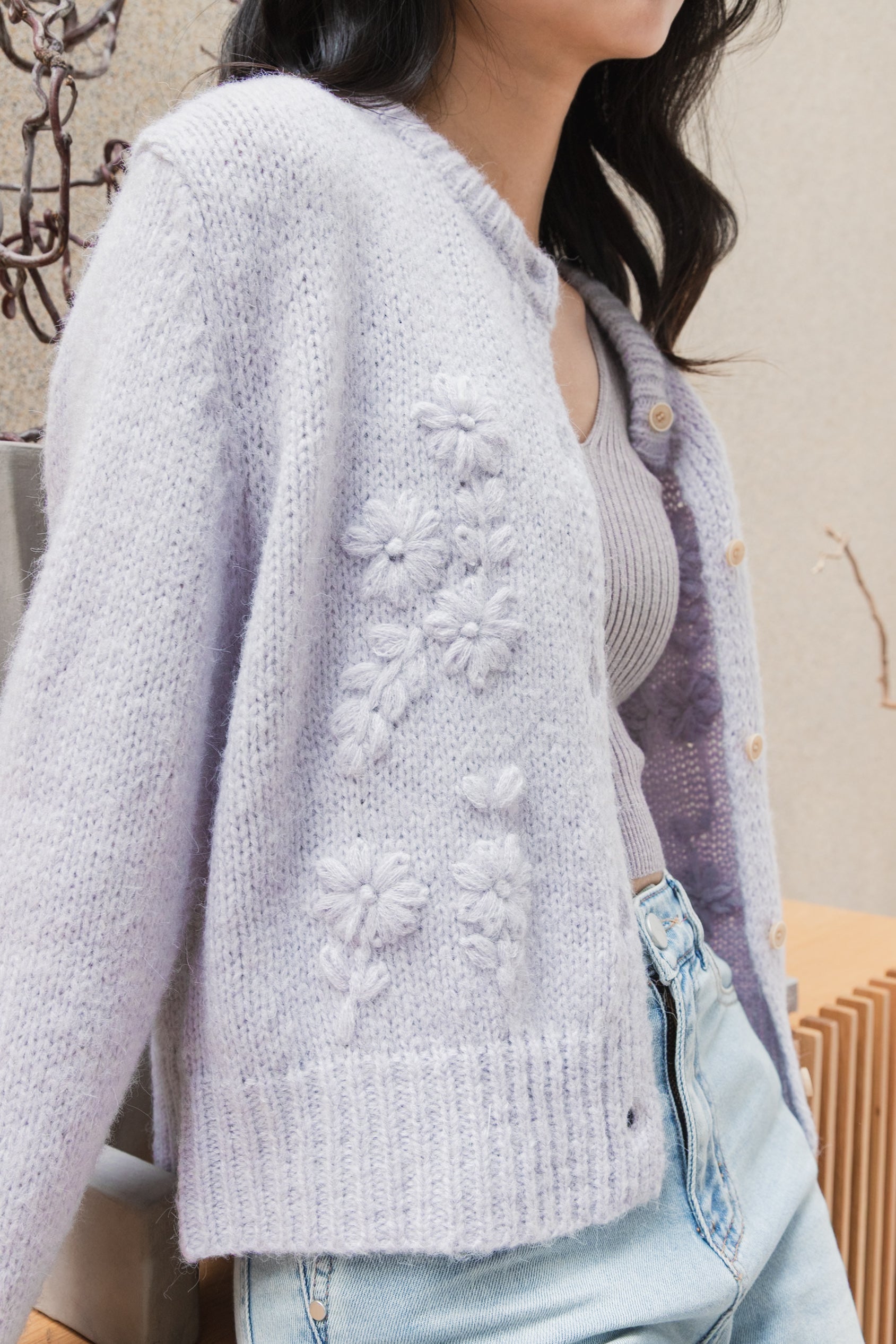 Fallon floral wool purple cardigan